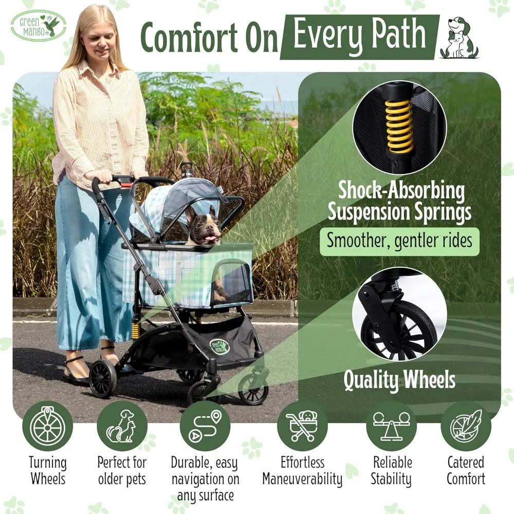 Take your pet anywhere with the 4-Wheel Pet Stroller by Wedyvko. Designed for both dogs and cats, it ensures comfort and safety during walks or outings. The four-wheel design provides stability and smooth maneuverability. Equipped with brakes, it keeps your pet secure on slopes and uneven surfaces. A spacious storage basket holds toys, treats, or essentials. Its lightweight foldable design makes it easy to store and carry. Ideal for outdoor trips, travel, or vet visits. The soft, ventilated cabin keeps pets cozy and comfortable. Suitable for puppies and small dogs, as well as cats. Make every stroll safe, fun, and convenient with this versatile pet stroller.
