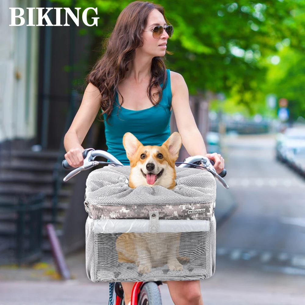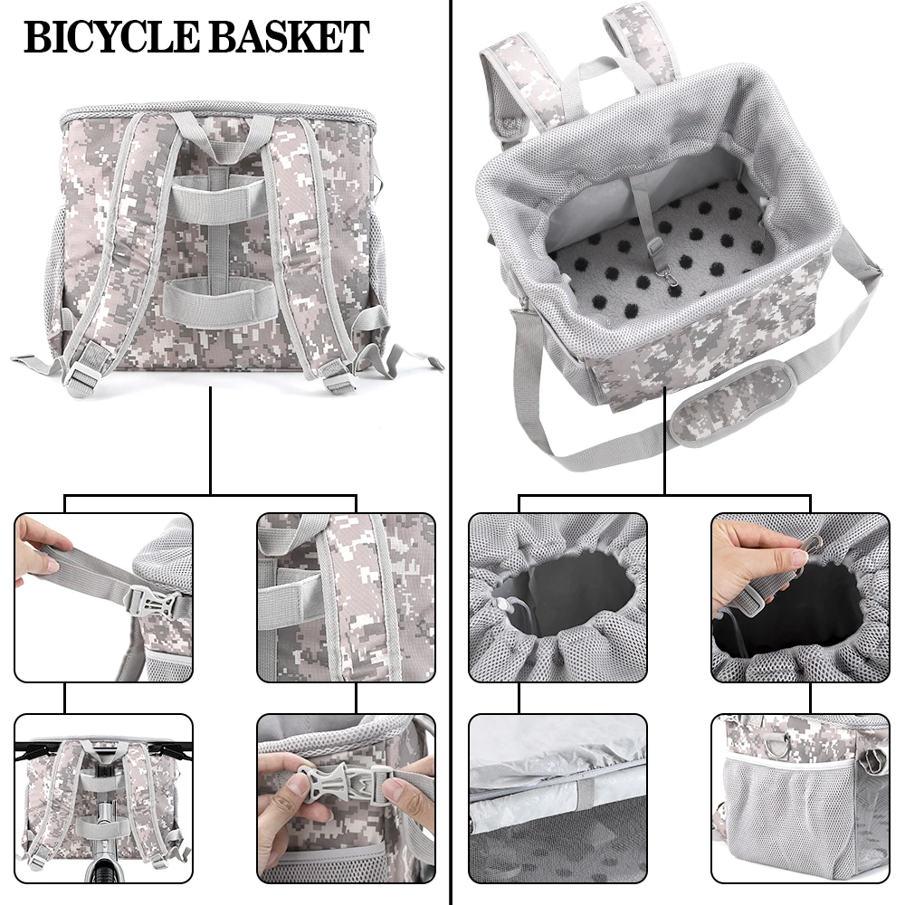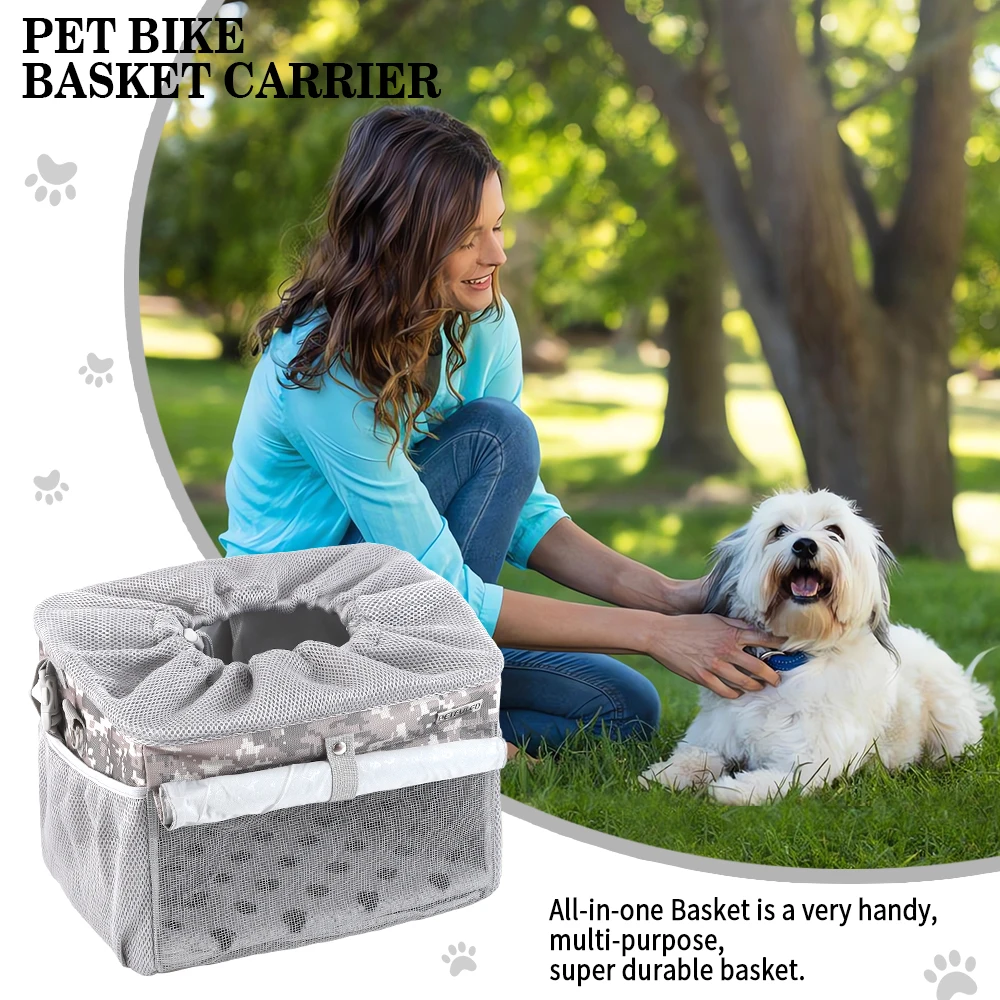 Take your pet along for rides safely with this Front Bike Pet Basket. Designed for small to medium dogs, it securely attaches to the front handlebar of most bicycles. The breathable mesh design ensures proper ventilation and comfort for your pet. The removable basket makes it easy to carry or clean after use. Lightweight yet durable, it can handle daily rides and outdoor adventures. The spacious interior provides room for pets to sit comfortably without feeling cramped. Secure straps and stable construction prevent tipping or wobbling during rides. Perfect for commuting, errands, or leisurely bike trips with your furry friend. Easy to install without special tools, making setup quick and hassle-free. Enjoy safe, convenient, and fun rides with your pet using this removable front bicycle pet basket.