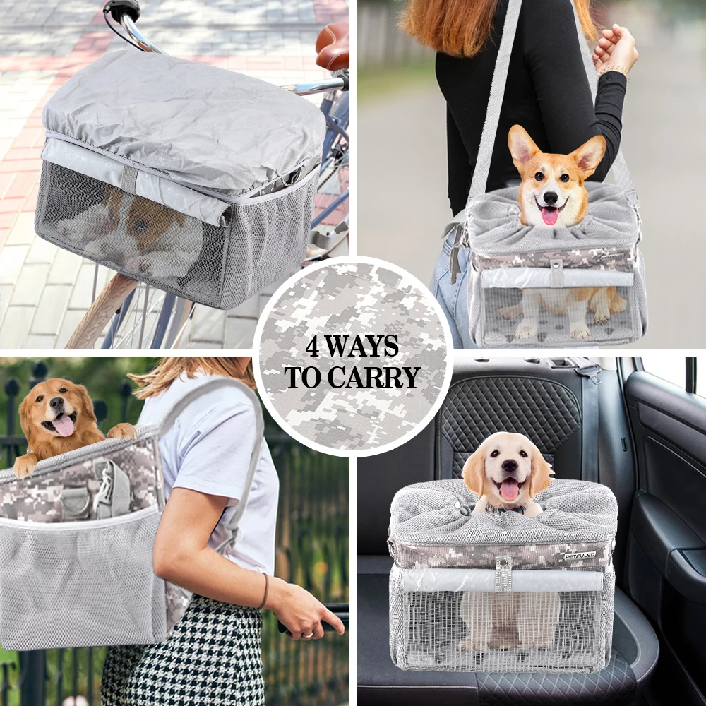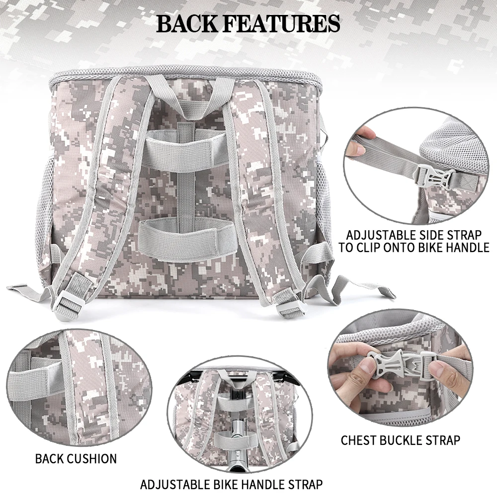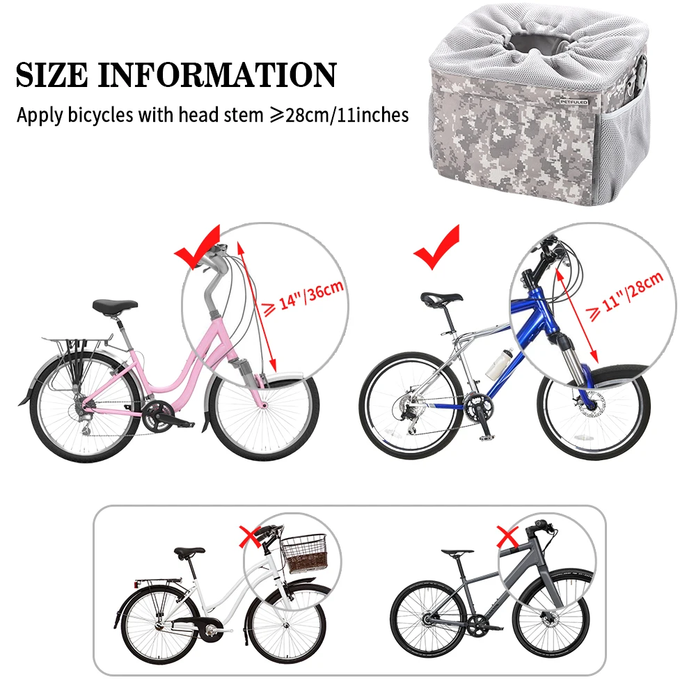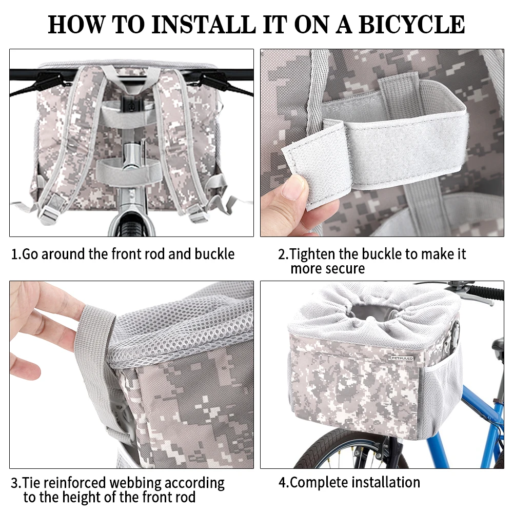 Take your pet along for rides safely with this Front Bike Pet Basket. Designed for small to medium dogs, it securely attaches to the front handlebar of most bicycles. The breathable mesh design ensures proper ventilation and comfort for your pet. The removable basket makes it easy to carry or clean after use. Lightweight yet durable, it can handle daily rides and outdoor adventures. The spacious interior provides room for pets to sit comfortably without feeling cramped. Secure straps and stable construction prevent tipping or wobbling during rides. Perfect for commuting, errands, or leisurely bike trips with your furry friend. Easy to install without special tools, making setup quick and hassle-free. Enjoy safe, convenient, and fun rides with your pet using this removable front bicycle pet basket.