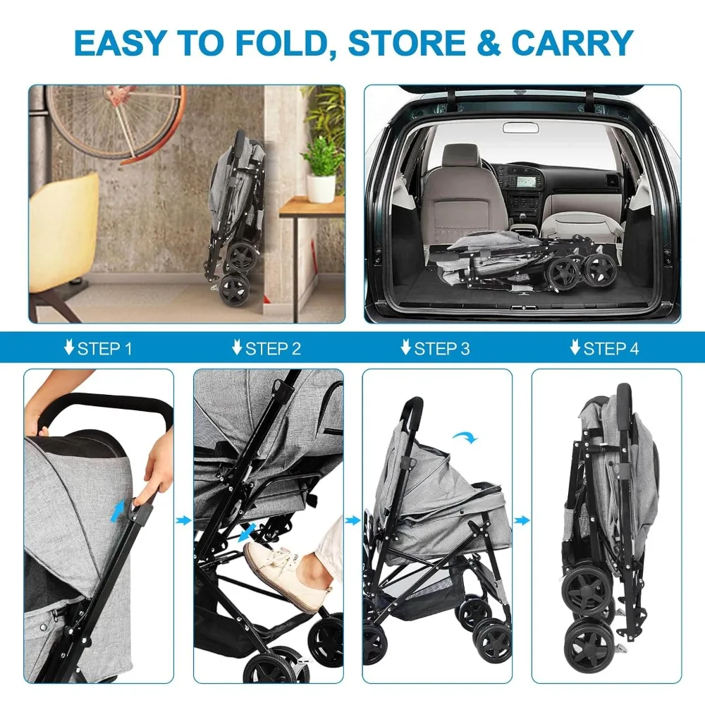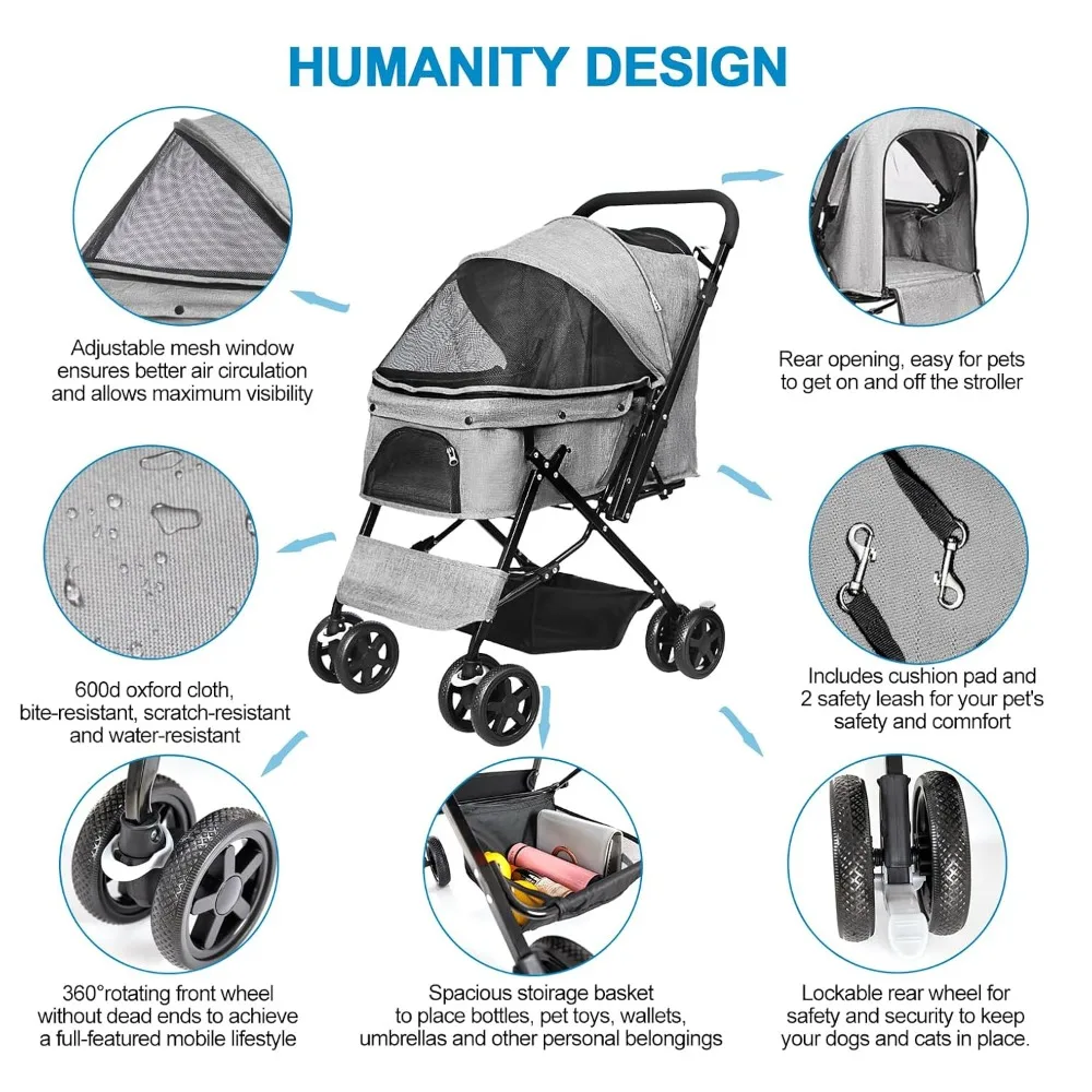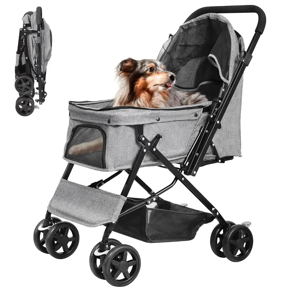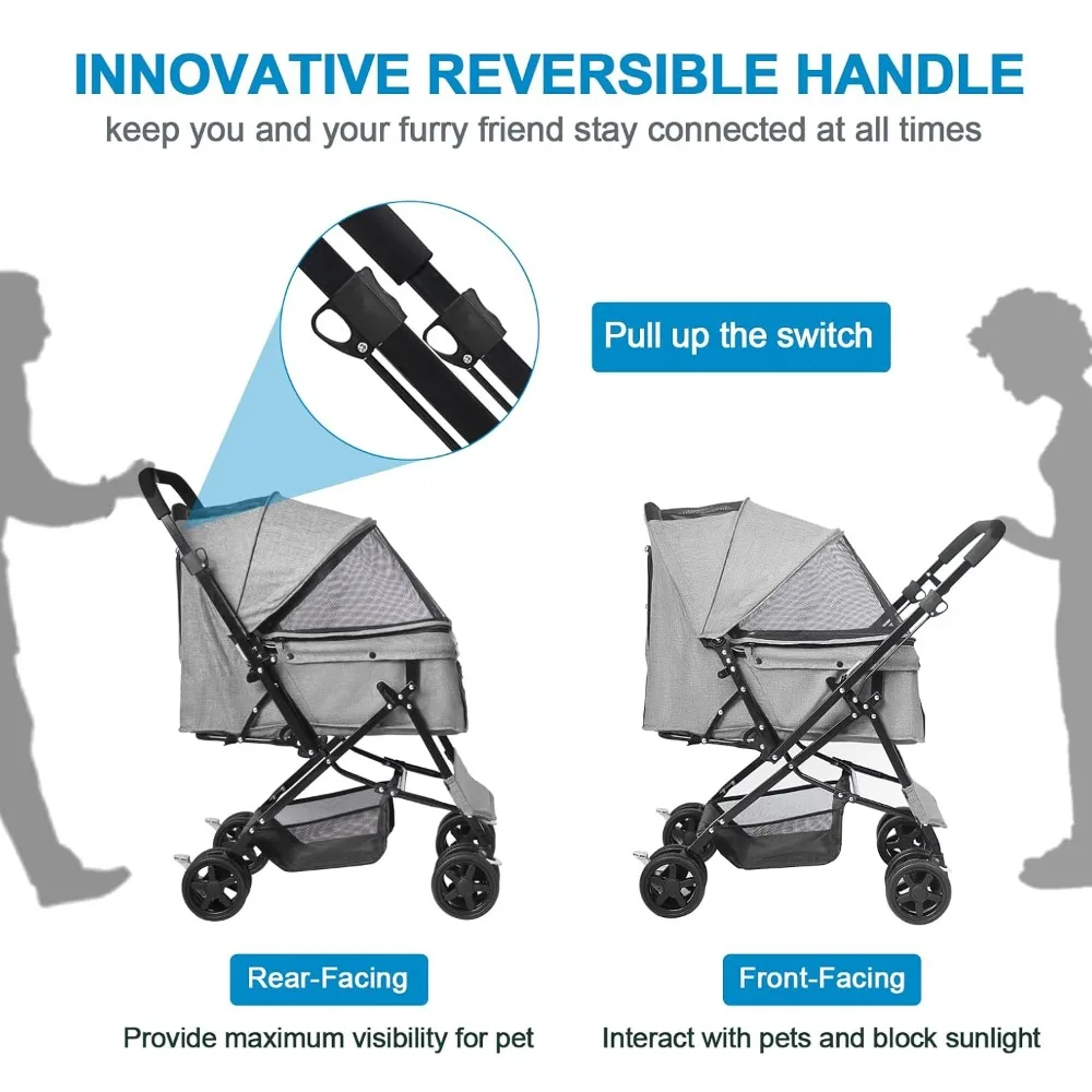 This Reversible Handle Pet Stroller is built for medium and large dogs as well as cats. The reversible handle allows you to push or pull the stroller comfortably. A spacious cabin provides plenty of room for pets to sit or lie down. The foldable design makes it easy to store or transport. Smooth-rolling wheels ensure stability on different surfaces. A large storage basket offers space for toys, treats, and essentials. Durable construction supports pets during longer outings. Ideal for travel, shopping trips, or daily walks. Perfect for pets needing extra comfort or mobility support. Enjoy convenience, space, and control with this versatile pet stroller.