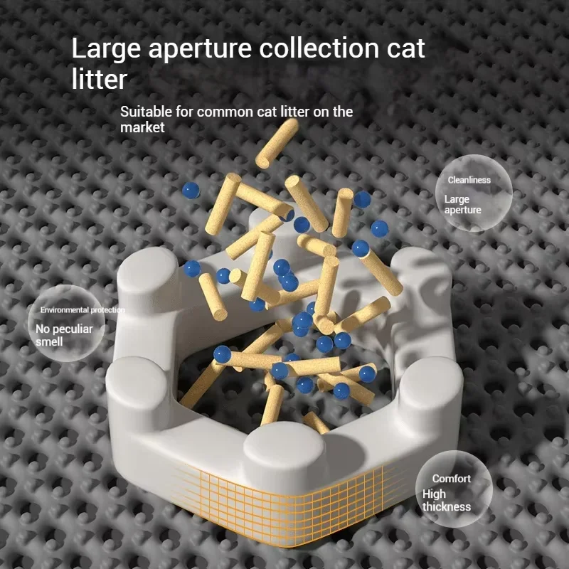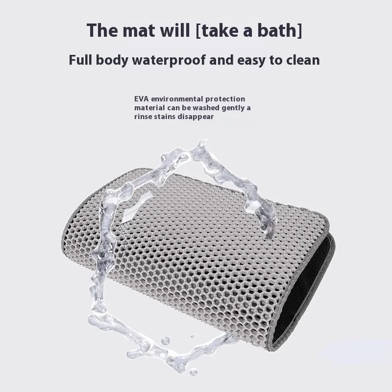 Keep your floors clean and tidy with this Large Waterproof Cat Litter Mat. The double-layer honeycomb design traps scattered litter effectively, keeping it off your floors. Made from durable, non-toxic EVA material that’s soft on your cat’s paws. Its waterproof base prevents urine and spills from leaking through to your floor. The non-slip backing ensures the mat stays in place even with active cats. Cleaning is quick and easy—simply shake, rinse, or vacuum to remove trapped litter. Lightweight yet sturdy, this mat is built for long-lasting daily use. It’s ideal for use with all types of litter boxes and training trays. Perfect for multi-cat households or kittens learning to use the box. Give your home a cleaner, fresher environment with this washable, durable litter-catching mat! 🐾🧼🏠